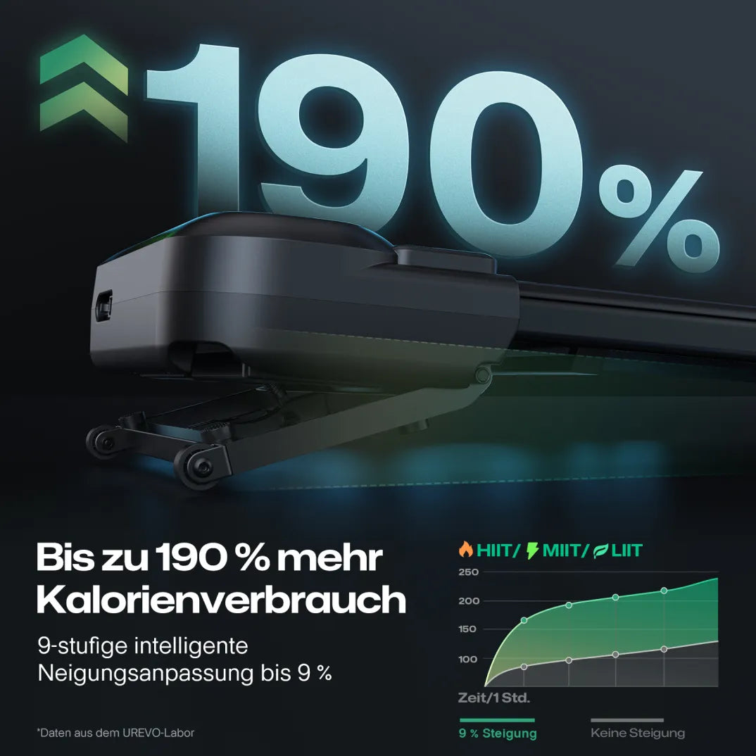 - Effizienter Kalorienverbrauch: 9-stufige 9 %-Steigung + HIIT-Programme. Steigern Sie die Fettverbrennungseffizienz um bis zu 190 % – smarter trainieren, schneller Ergebnisse sehen.