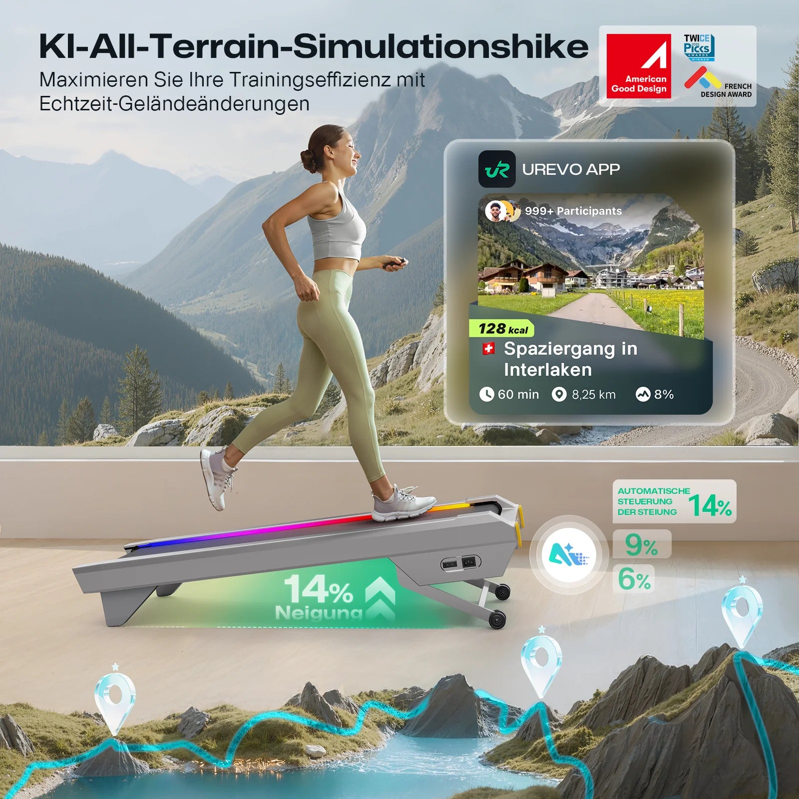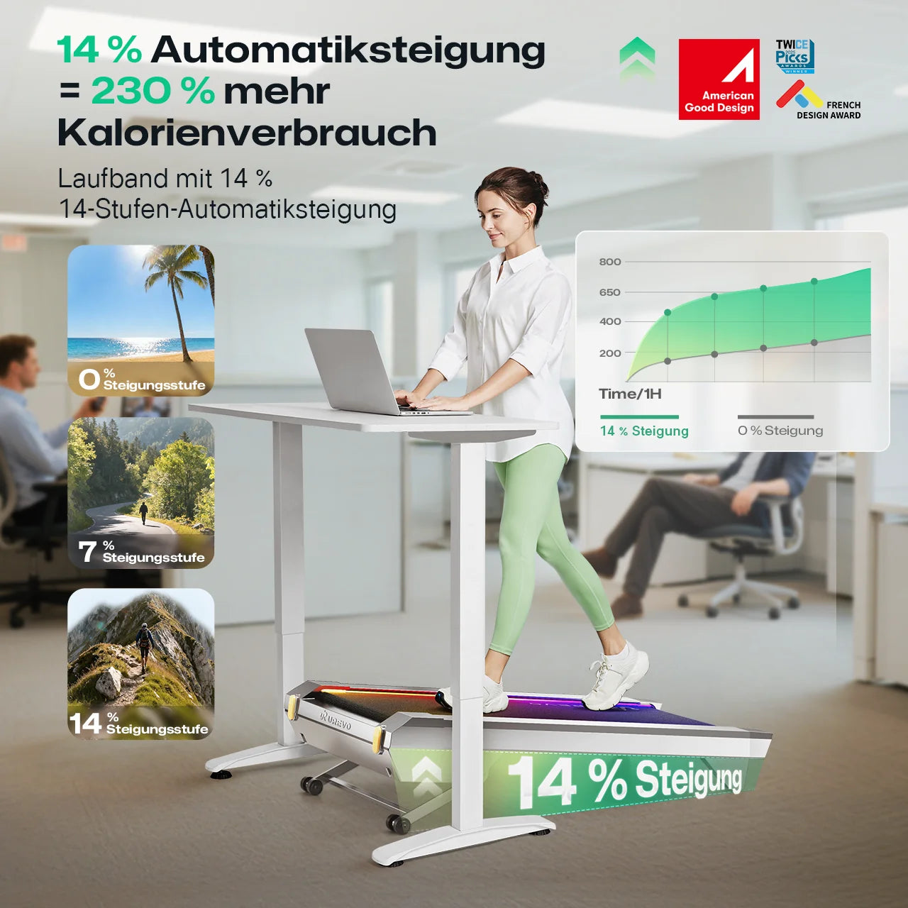 Dynamische 14%-Maximalsteigung: Die MegaLift-Technologie ermöglicht 14 % Steigung – steigert Fettverbrennungseffizienz um 190 % für schnelleres Trainingsergebnis.