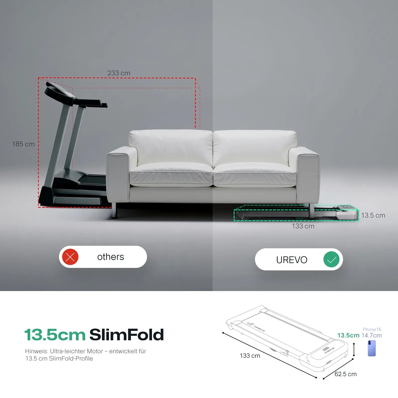 - bürstenloser Motor für jedes Homegym: Unser Dual-Motor-System liefert echte, gewerbegleiche 3,0 PS (3.0HP) Leistung – doppelt so stark wie Standard-Heimgeräte. Umfangreiche UREVO-Labortests garantieren leisen 45dB-Betrieb, der Mitbewohner oder Nachbarn nicht stört.