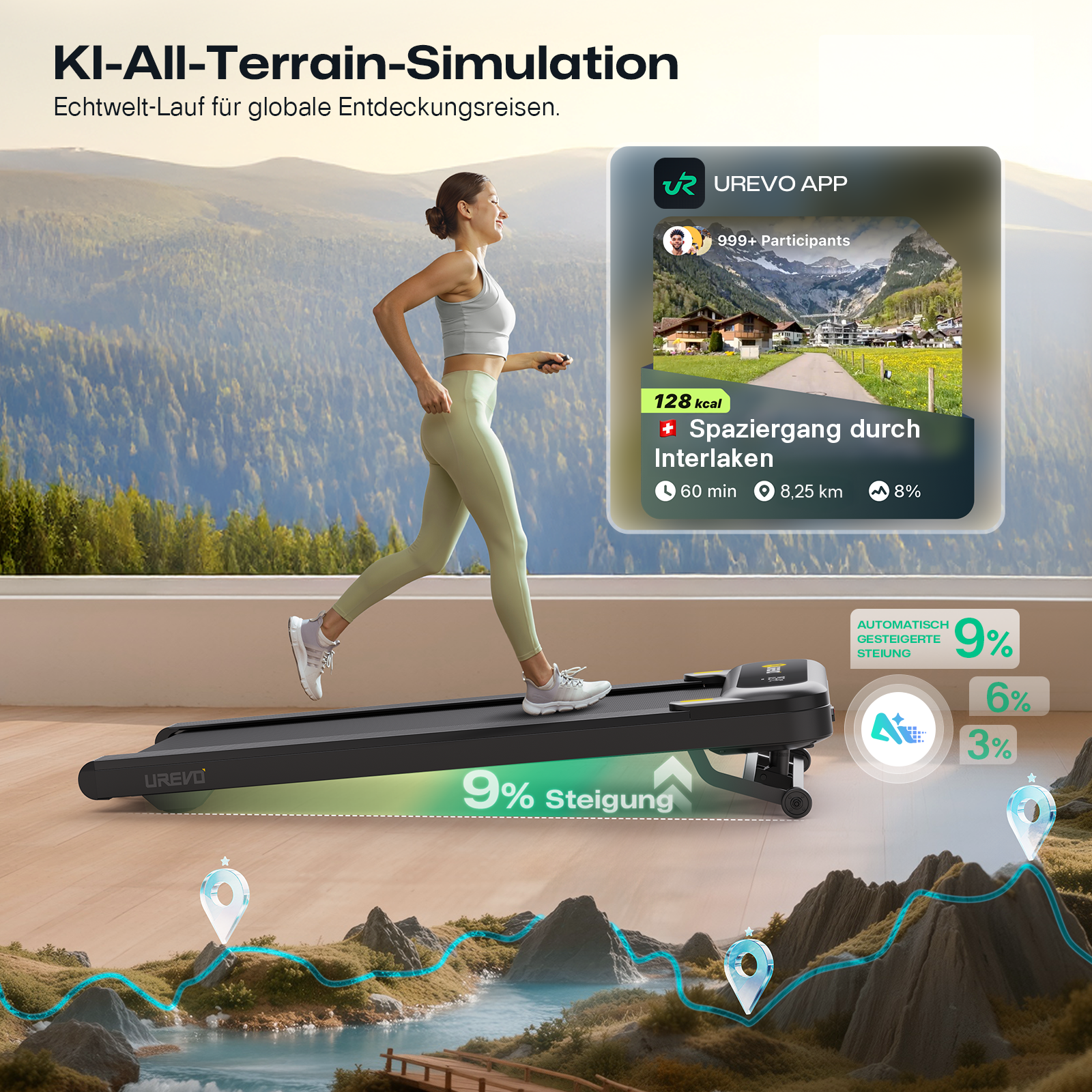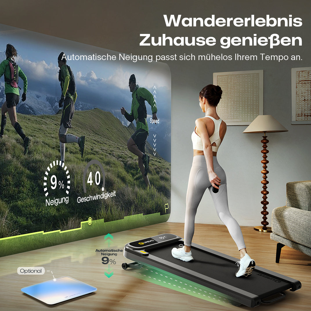 - Naturerlebnis für Zuhause: Genießen Sie das Gefühl von Outdoor-Wanderungen – ganz bequem in den eigenen vier Wänden. Die KI-gesteuerte Neigungsfunktion simuliert natürliche Pfade und bringt die Vorteile eines Outdoor-Trainings direkt zu Ihnen nach Hause.