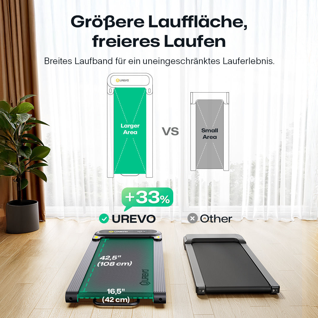 - Mehr Platz, mehr Freiheit: Die großzügige Lauffläche von 42 cm x 108 cm (16,5" x 42,5") bietet ausreichend Raum für ein komfortables und freies Laufgefühl – ideal für alle Nutzer.