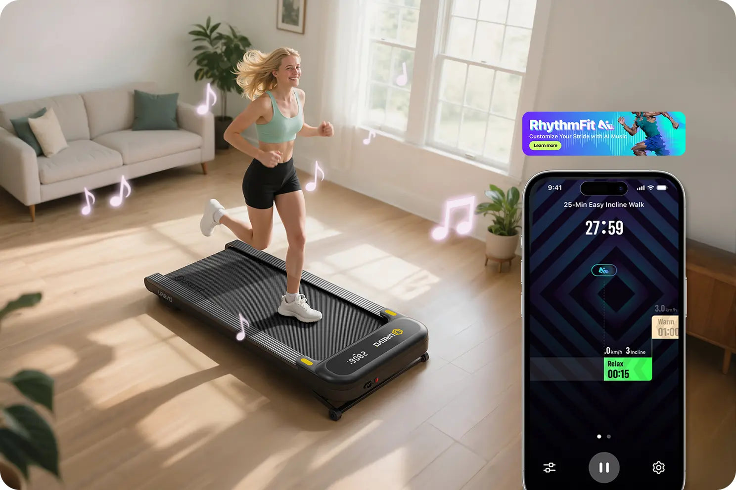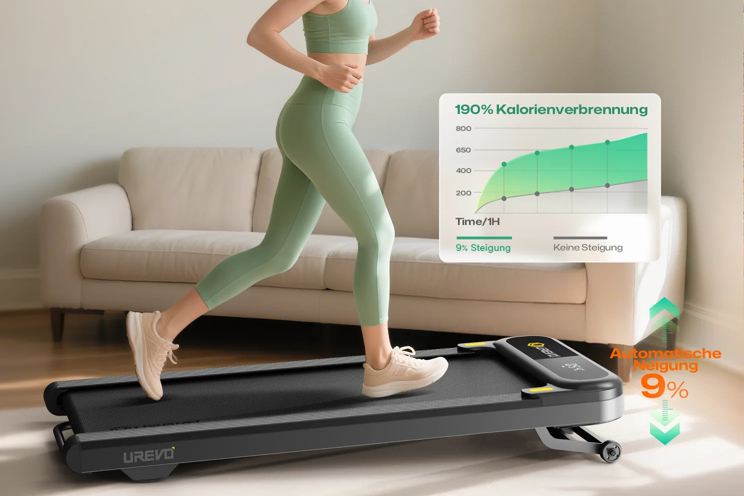 - Effiziente Fettverbrennung: Der SpaceWalk 3S verfügt über eine automatische Neigungsfunktion von 9 %, die die Fettverbrennung optimiert. Mit nur einem Knopfdruck über die Fernbedienung oder die UREVO-App lässt sich die Neigung bequem einstellen.