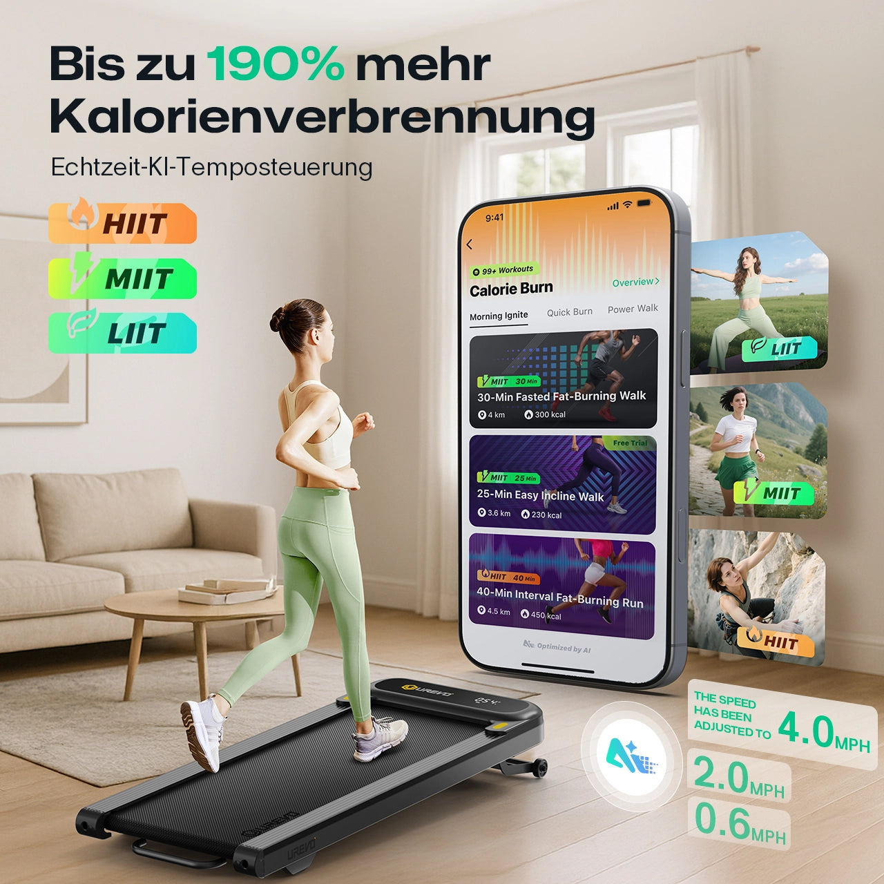 - Naturerlebnis für Zuhause: Genießen Sie das Gefühl von Outdoor-Wanderungen – ganz bequem in den eigenen vier Wänden. Die KI-gesteuerte Neigungsfunktion simuliert natürliche Pfade und bringt die Vorteile eines Outdoor-Trainings direkt zu Ihnen nach Hause.