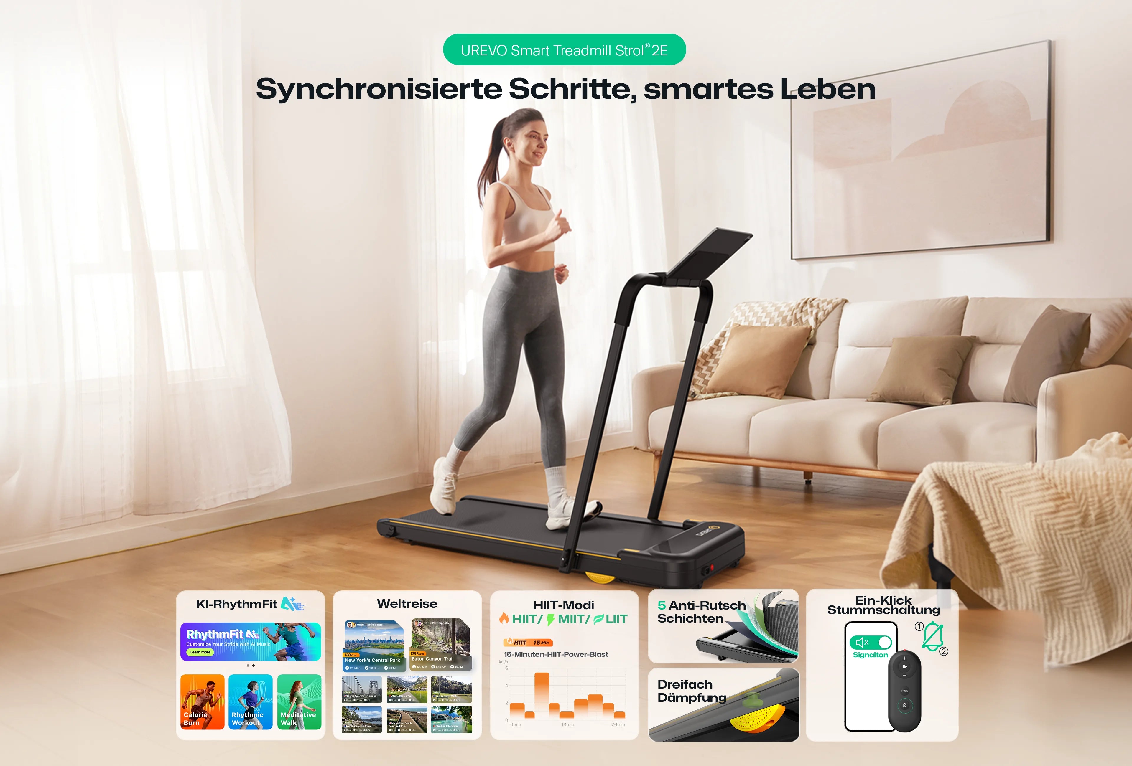 - UREVO APP: Verbinden Sie das Laufband mit der UREVO Sport App und greifen Sie auf Ihre Trainingsberichte zu. Egal ob Anfänger oder Fitness-Enthusiast – mit der UREVO Laufband- und Trainings-App sind Sie bestens ausgestattet.