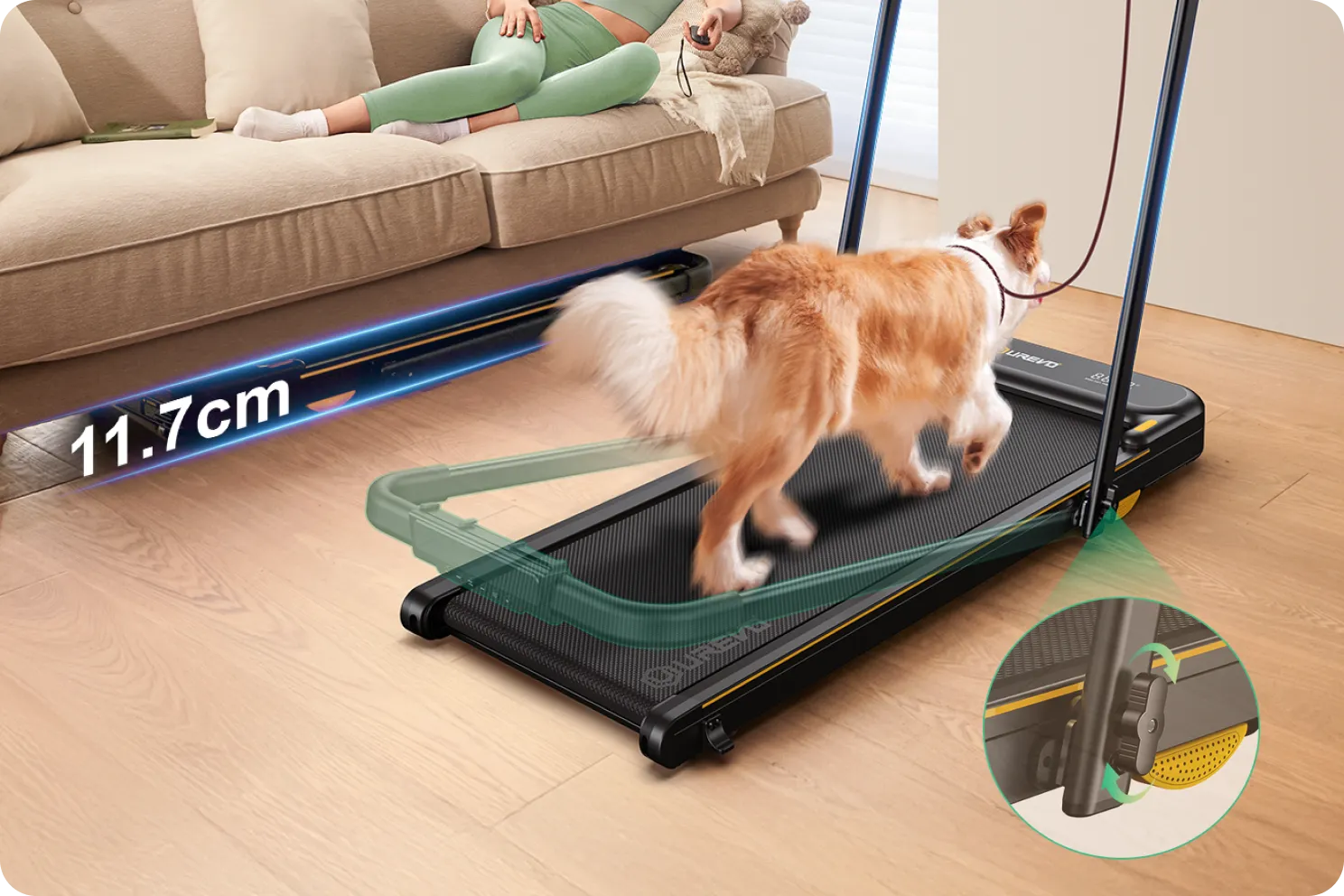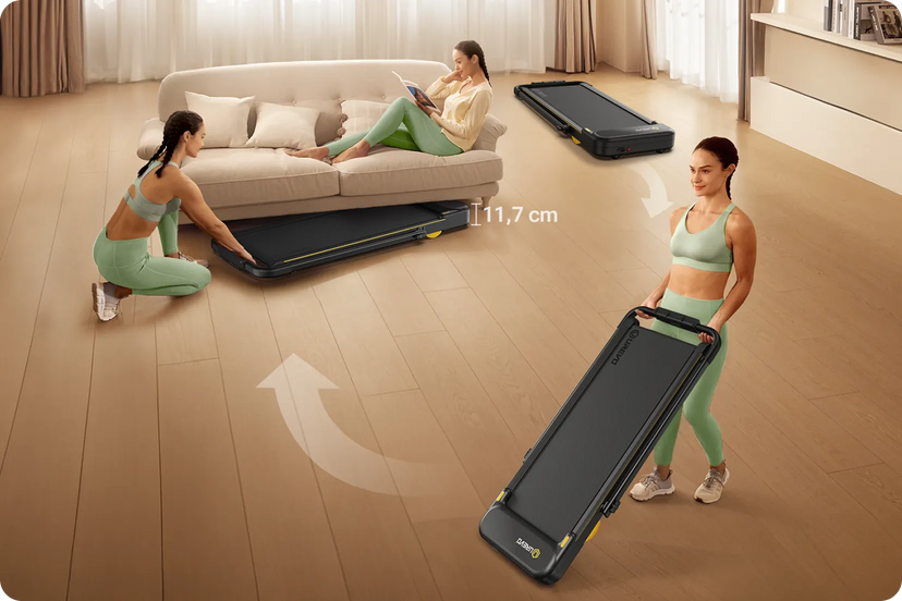 - 2-in-1-Untertisch-Laufband: Offener Laufmodus (0,9–10 km/h), zusammengeklappter Laufmodus (0,9–6 km/h) – je nach Bedarf einstellbar. Nicht nur zum Laufen, sondern auch für den Einsatz unter dem Schreibtisch. Die Fernbedienung mit Ein-Tasten-Funktion zum Ausschalten des Tons ermöglicht eine einfache Einstellung. Die Rückseite der Fernbedienung ist mit Magneten versehen, die am Laufband befestigt werden können, um Verlust bei Nichtgebrauch zu vermeiden.