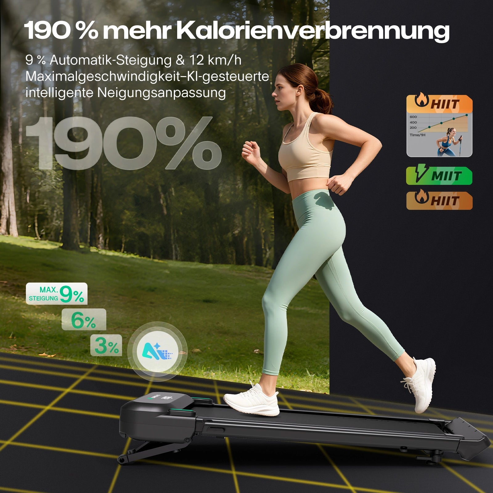 Home-Fitness-Center: Professionelles Laufband mit 9-stufiger 9 %-Automatiksteigung und 181 kg (400 lbs) Tragkraft – bewegen Sie sich frei und verbrennen Sie Kalorien effizienter.
