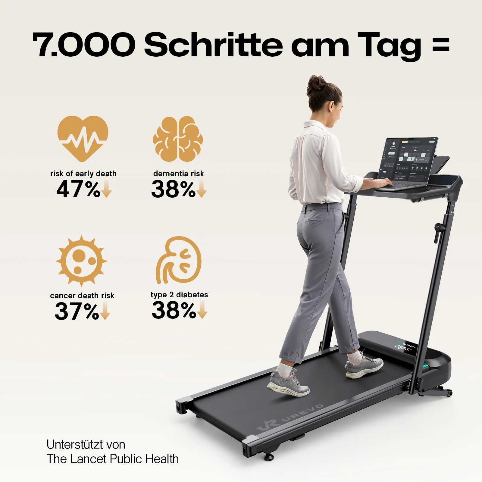 Intelligenter trainieren, besserer Erfolg.: Mit umfangreichen Inhalten der UREVO-App erfassen Sie jederzeit Ihre Wellness-Daten, finden einen intelligenteren Gesundheitsansatz und entwickeln gesündere Gewohnheiten.