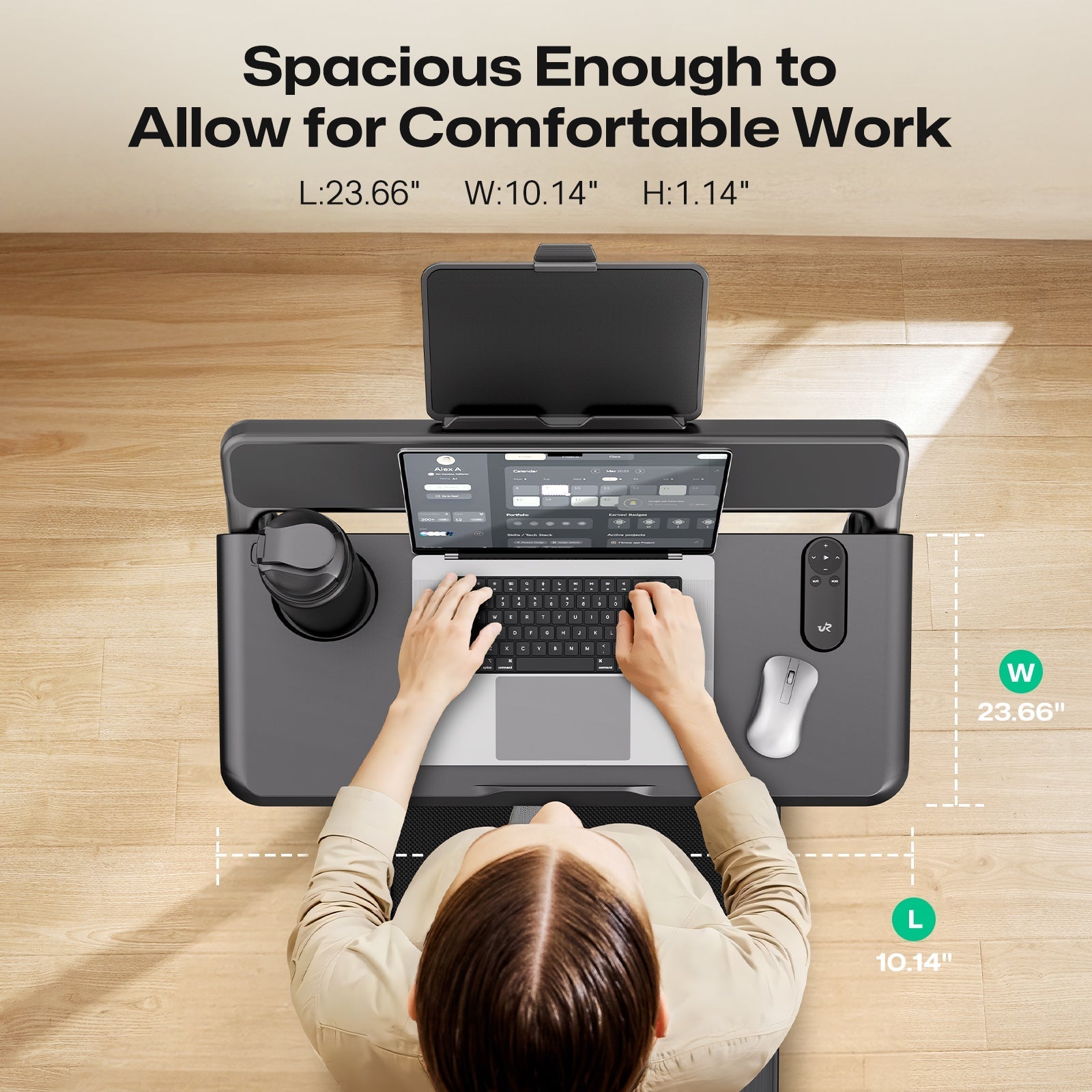 • Anti-Rutsch-Design: Erhöhte Kanten verhindern Herunterfallen – sorgenfreies Arbeiten und Entertainment am Laufband.