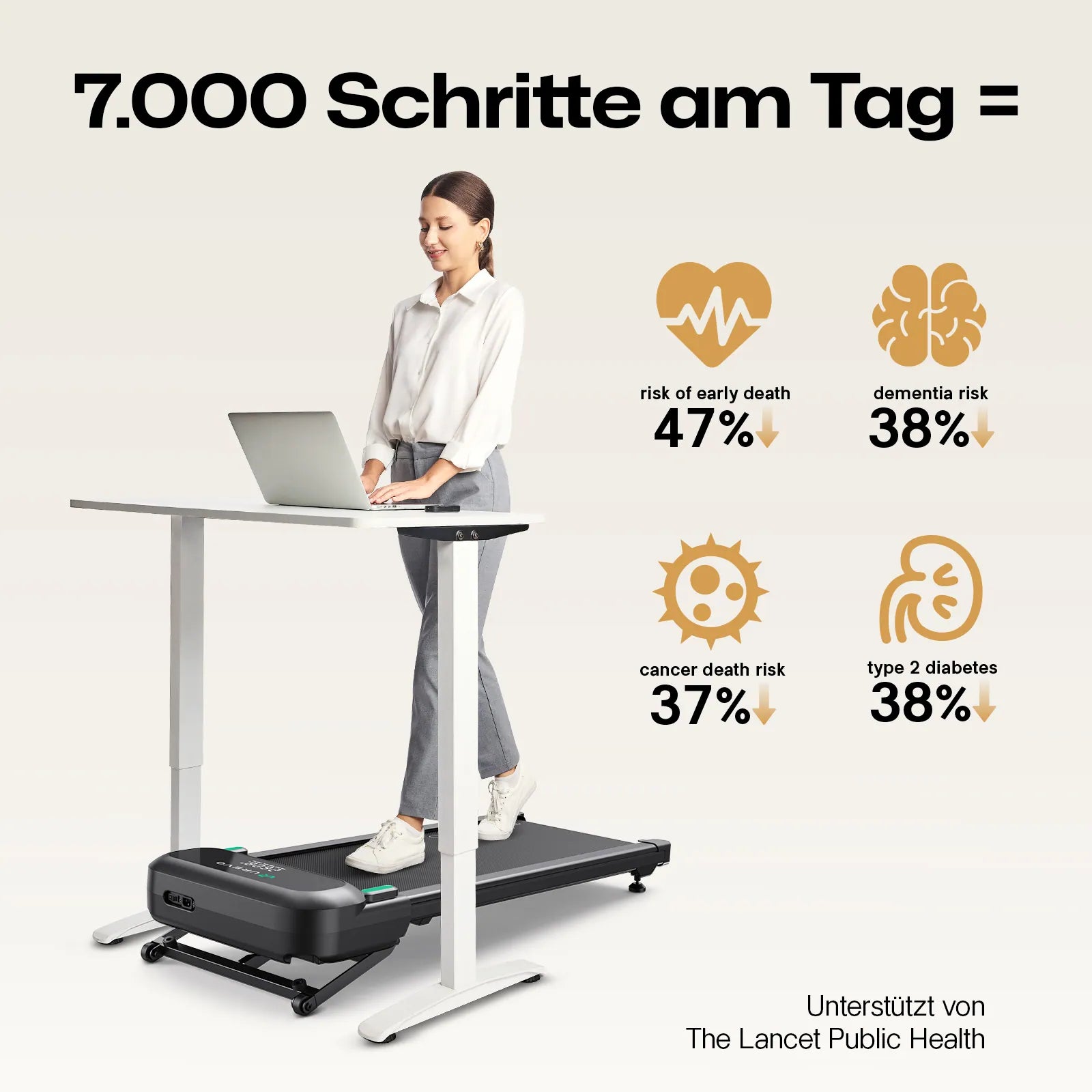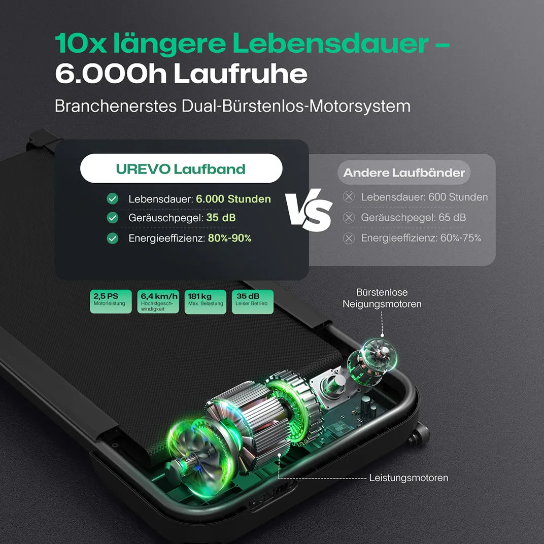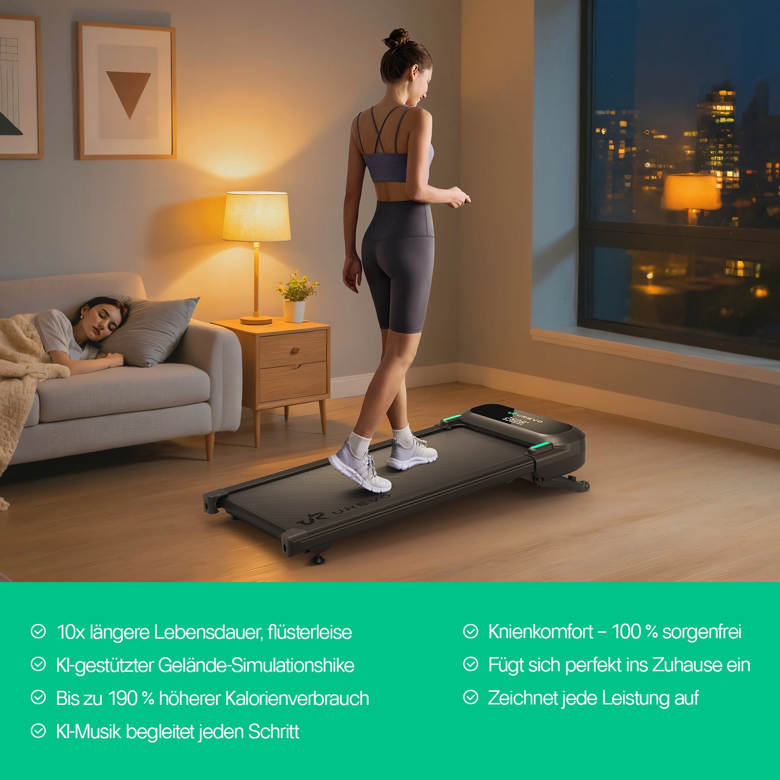 Zu Hause verstaut, überall gewandert. Das UREVO SpaceWalk 5L erweckt das Training in realem Gelände zum Leben – mit KI-gestützter Steigungs- und Geschwindigkeitsanpassung sowie immersivem, routenbasiertem HIIT. Das ultra-schlanke Design passt unter Sofas, Betten oder in Ecken, während ein extrem leiser bürstenloser Motor für ein ungestörtes Training sorgt. Erleben Sie ein nahtloses „World-Tour“-Workout in den eigenen vier Wänden.